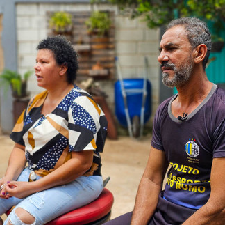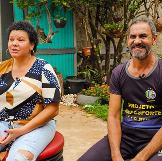 A equipe também entrevistou os irmãos Romeu e Elaine. Eles vivem na região do Santa Cruz desde 1983. Ao todo são 18 irmãos vivos, que ao longo do tempo tiveram uma vida dura, de muito trabalho. Durante a conversa, eles contaram sobre a evolução e o crescimento do bairro. “A gente não tinha água da Copasa, então íamos buscar em córrego da região. Antigamente a gente buscava água para beber e também lavava roupas lá. Era uma vida dura, mas a gente se divertia. Hoje, está tudo mais fácil aqui, mas ainda sonhamos em poder melhorar a vida da comunidade como um todo”.
